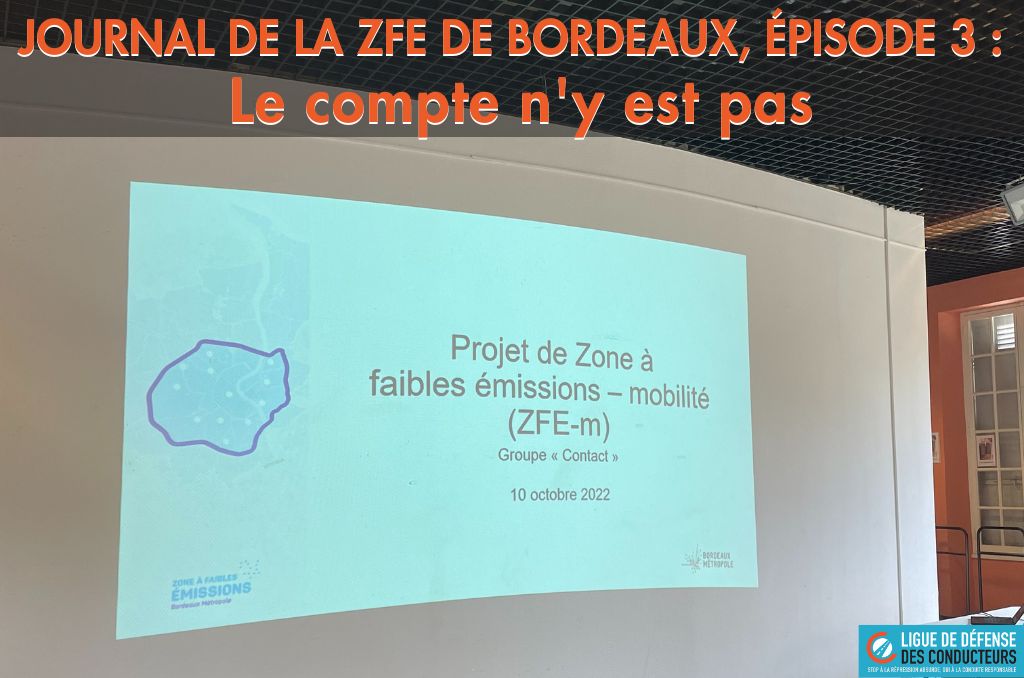 Pour la troisième fois, la Ligue de Défense des Conducteurs s’est rendue à Bordeaux pour participer au groupe de travail œuvrant à la mise en place de la Zone à faibles émissions (ZFE). Au terme de cette troisième réunion, un seul constat : rien n’avance. C’est à se demander si les élus, qui n’ont cessé de briller par leur absence depuis que la métropole a entrepris ces consultations, ont pris conscience de l’ampleur de la tâche avant la mise en place de cette future zone de restriction de circulation liée à l’ancienneté des véhicules au 1er janvier 2025.