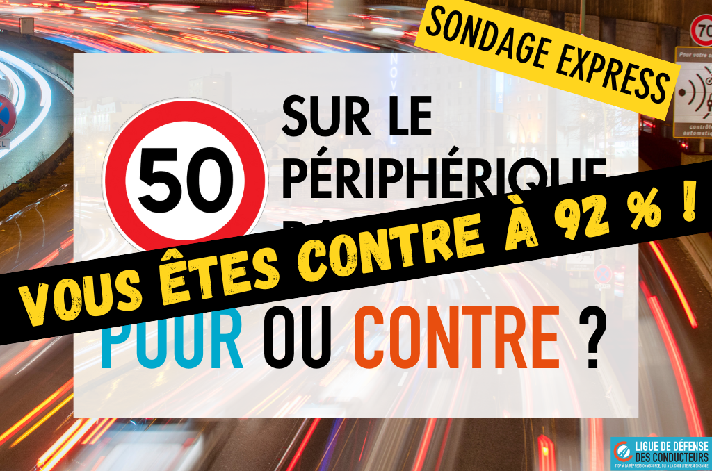 En réaction à l’annonce d’Anne Hidalgo, le 9 septembre dernier, d’abaisser la limitation de vitesse sur le périphérique de Paris à 50 km/h au lieu de 70, la Ligue de Défense des Conducteurs a aussitôt organisé un sondage auprès des Franciliens et des résidents des départements limitrophes. Les premiers concernés, donc. Notre question à leur intention était simple : êtes-vous pour ou contre le 50 ?