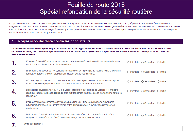30 174 conducteurs ont répondu au questionnaire pour élaborer la Feuille de route 2016 de la Ligue de Défense des Conducteurs.